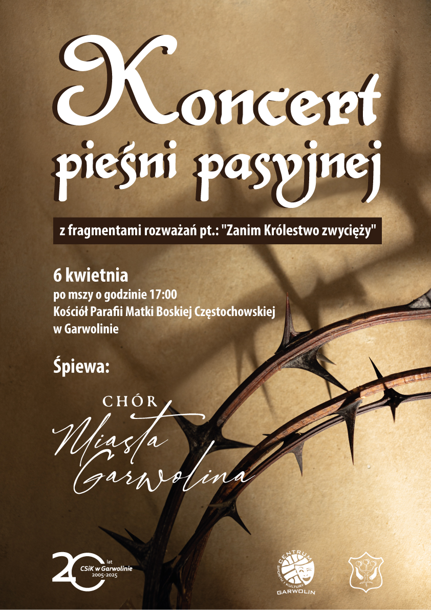 Historia śpiewania pieśni pasyjnych w Polsce sięga średniowiecza i jest związana z obrzędowością kościelną i ludową. Tradycyjnie śpiewane są w okresie Wielkiego Postu. Pełnią one dwie zasadnicze funkcje. Pierwsza to przekazanie historii Męki Pańskiej i wyjaśnienie prawd teologicznych z nią związanych, a druga – danie upustu emocjom wiernych, co wyrażało się w tekstach utworów przez nagromadzenie żywych obrazów, dosadnych epitetów i porównań. Pieśni wielkopostne są pełne dramaturgii, podkreślają ogrom cierpień Pana Jezusa, wyrażają też głęboki żal nad Jego udręczeniem, by doświadczyć odkupienia swoich grzechów przez pokutę. Do najpopularniejszych pieśni należą: Ach, mój Jezu, Jezu Chryste, Panie miły czy Wisi na krzyżu oraz Ludu, mój ludu.Podczas niedzielnego koncertu w kościele pw. Matki Boskiej Częstochowskiej Chór Miasta Garwolin zaprezentuje wybrane pieśni pasyjne. Koncert rozpocznie się bezpośrednio po mszy świętej o godzinie 17:00. Dyrygować zespołem będzie Aleksandra Bienias. Wstęp wolny.