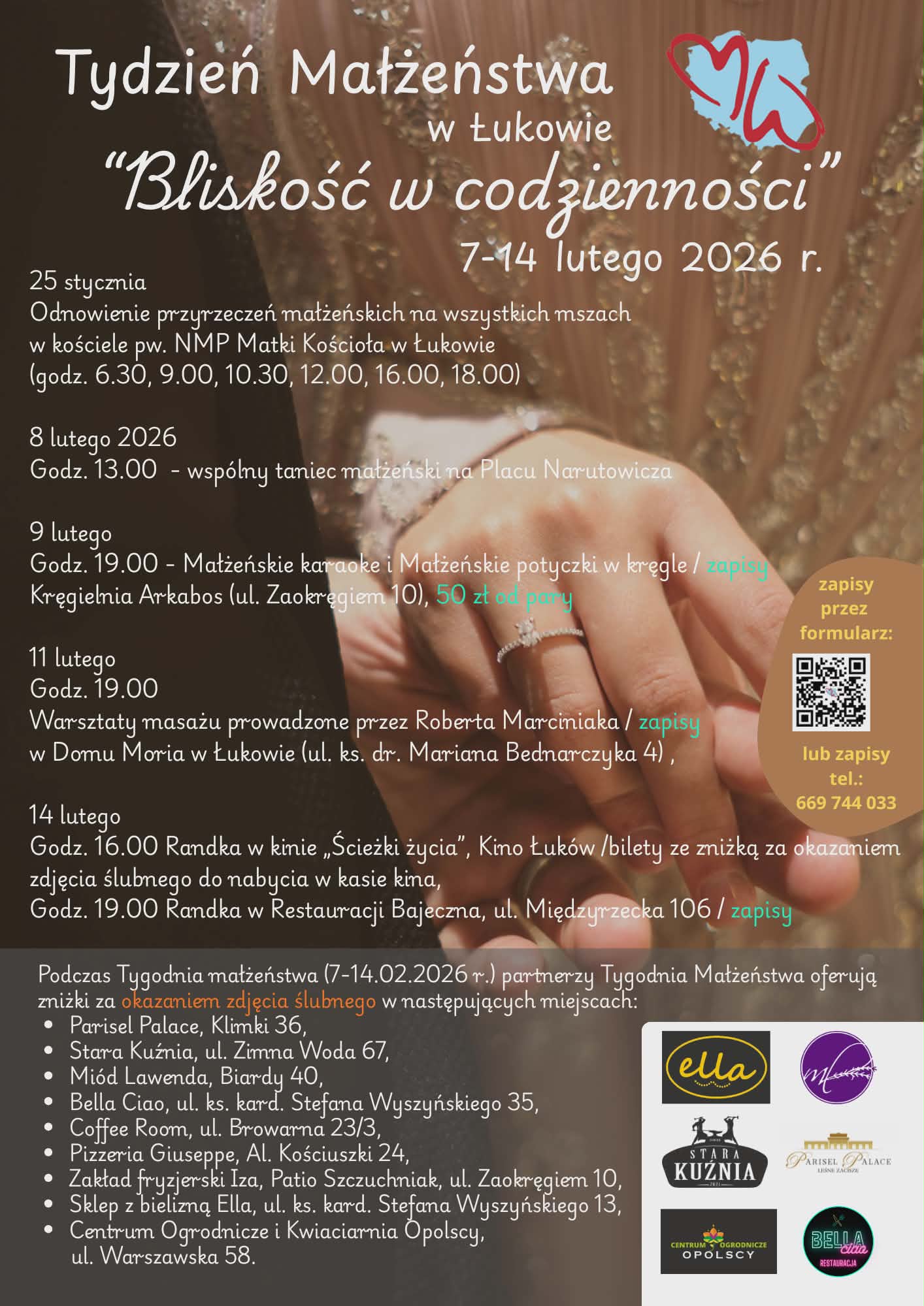 Podczas Tygodnia Małżeństwa będzie też można skorzystać ze zniżek ferowanych przez partnerów wydarzenia. Ich lista na plakacie.