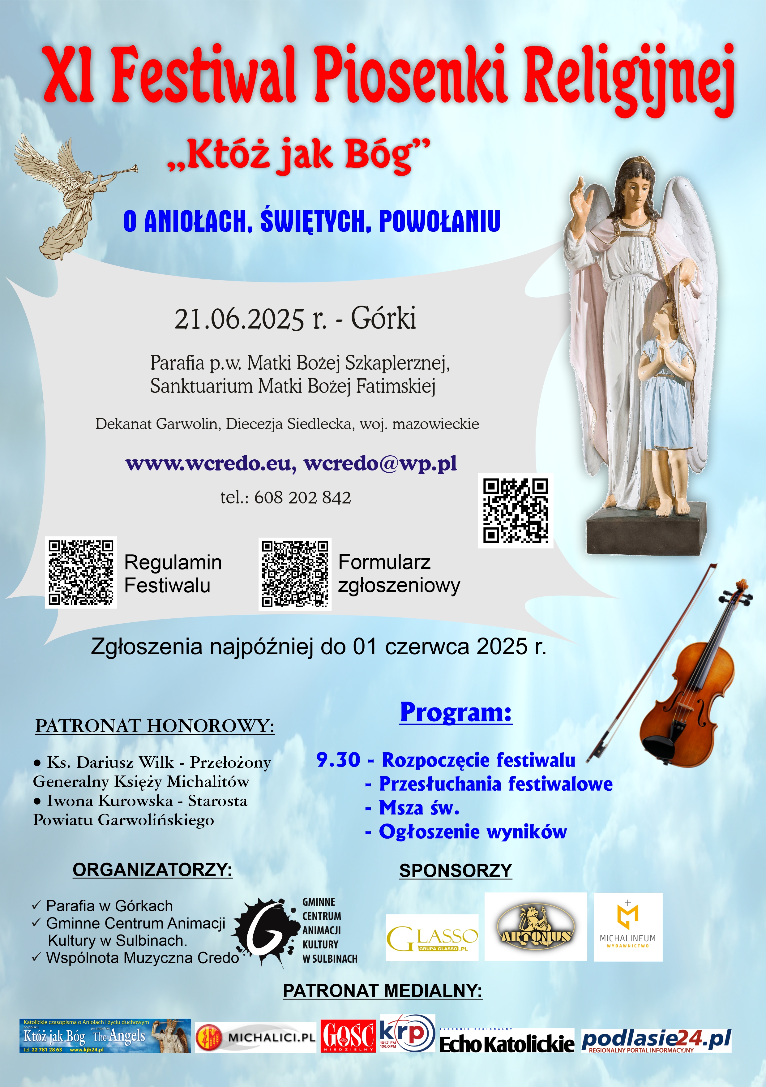 Do 1 czerwca przyjmowane są zgłoszenia do XI edycji Festiwalu Piosenki Religijnej „Któż jak Bóg”, który w czerwcu odbędzie się w Sobocie (14 czerwca) oraz w Górkach k. Garwolina (21 czerwca). Przegląd adresowany jest do dzieci i młodzieży – zarówno solistów, jak i zespołów – wykonujących utwory o tematyce religijnej, związanej z aniołami, powołaniem oraz świętymi. Inicjatywa ma na celu popularyzację wartości chrześcijańskich i rozwijanie muzycznych talentów młodego pokolenia.
