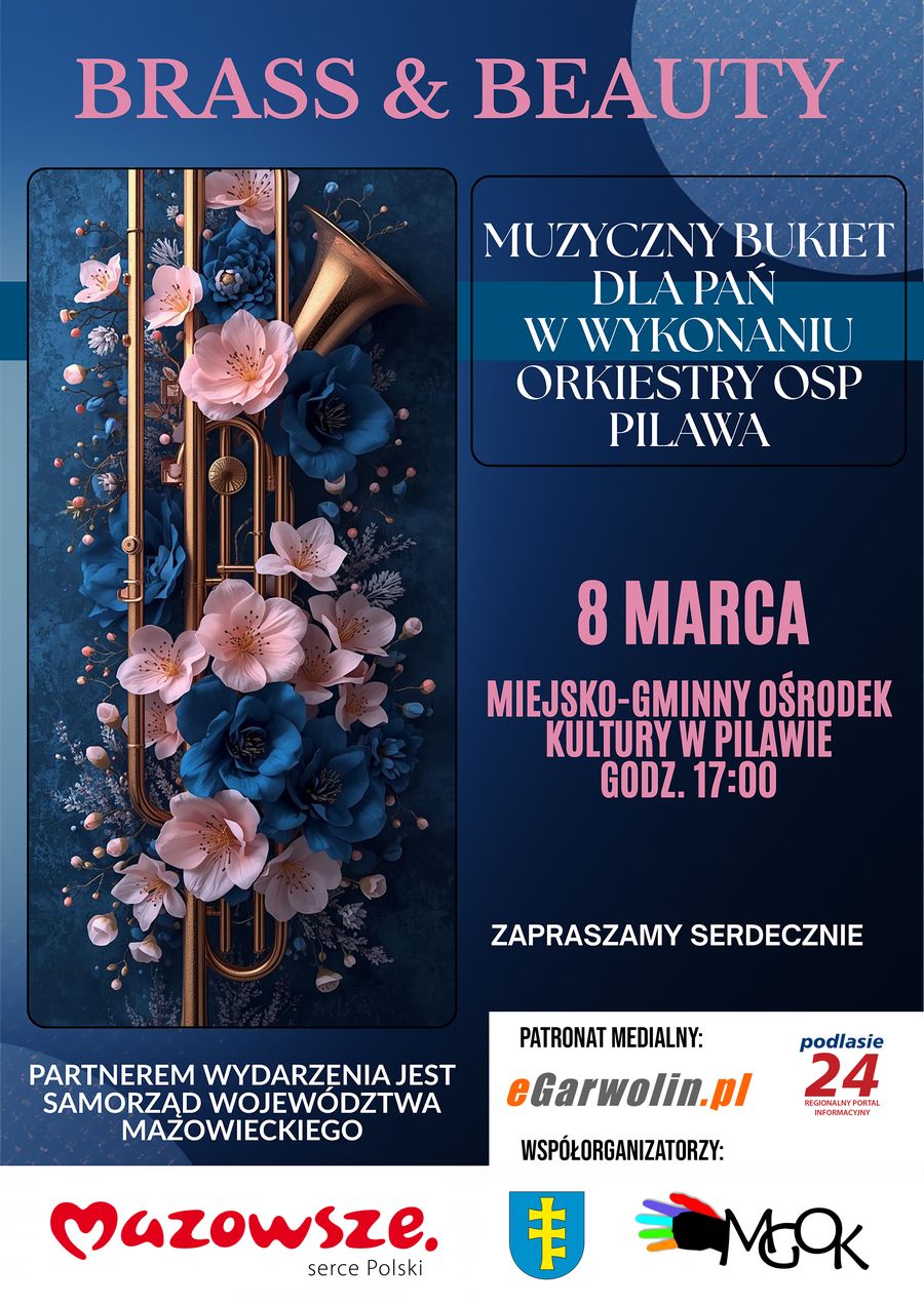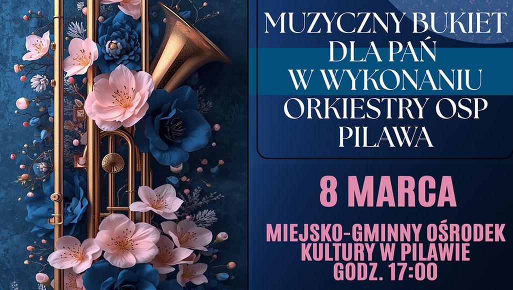 Z okazji Dnia Kobiet o godz. 17:00 w Miejsko-Gminnym Ośrodku Kultury w Pilawie wystąpi miejscowa Orkiestra Ochotniczej Straży Pożarnej. Koncert pod tytułem „Brass & Beauty” („Mosiądz i Piękno”) będzie wyjątkowym muzycznym prezentem przygotowanym specjalnie dla pań – choć repertuar z pewnością przypadnie do gustu wszystkim miłośnikom znanych i lubianych melodii.Orkiestra, występująca wspólnie z mażoretkami, od lat odnosi znaczące sukcesy artystyczne. Jest laureatką licznych nagród zdobytych podczas Wojewódzkich Przeglądów Orkiestr OSP, a także zdobywczynią tytułu Najlepszej Orkiestry Dętej Krajowej Sieci Obszarów Wiejskich. Zespół brał również udział w próbie ustanowienia rekordu Guinnessa podczas „Koncertu Największej Strażackiej Orkiestry Świata” w Warszawie.