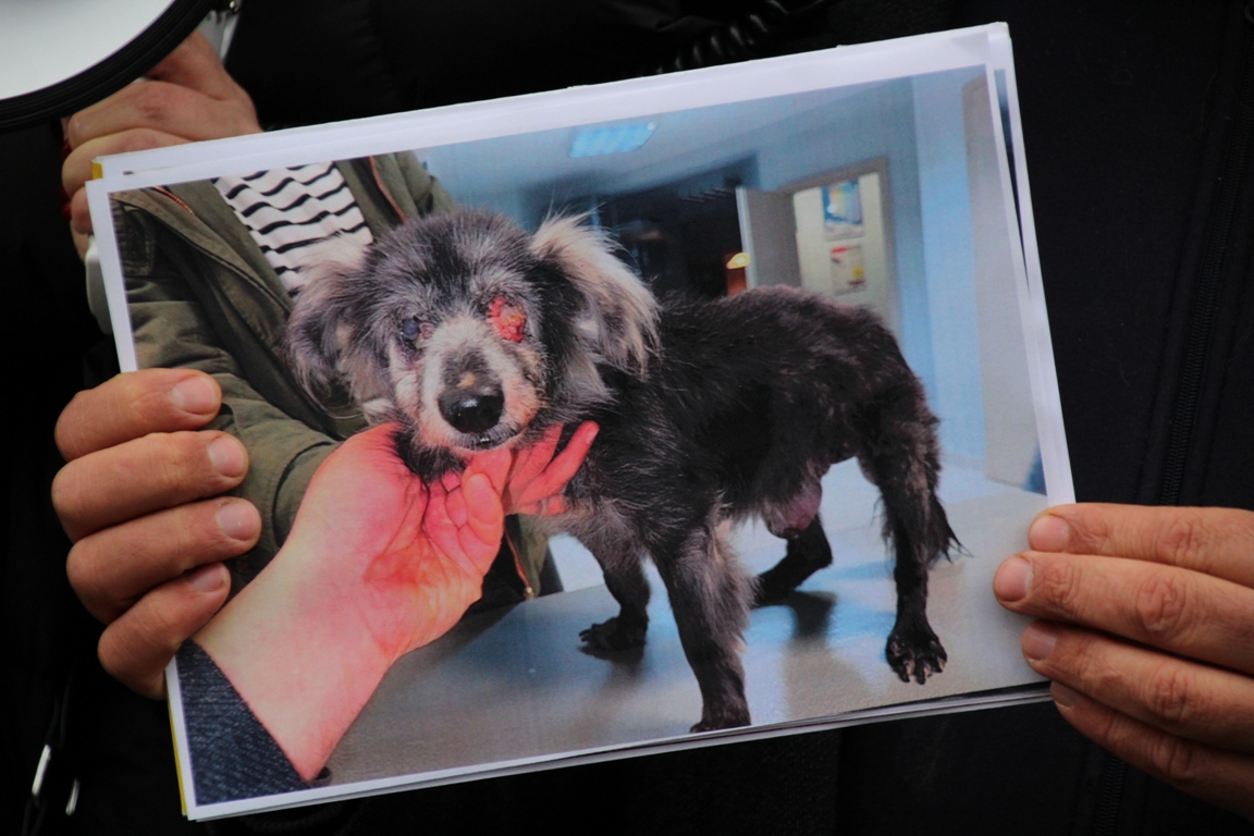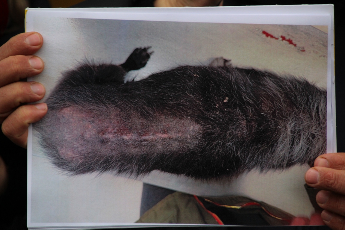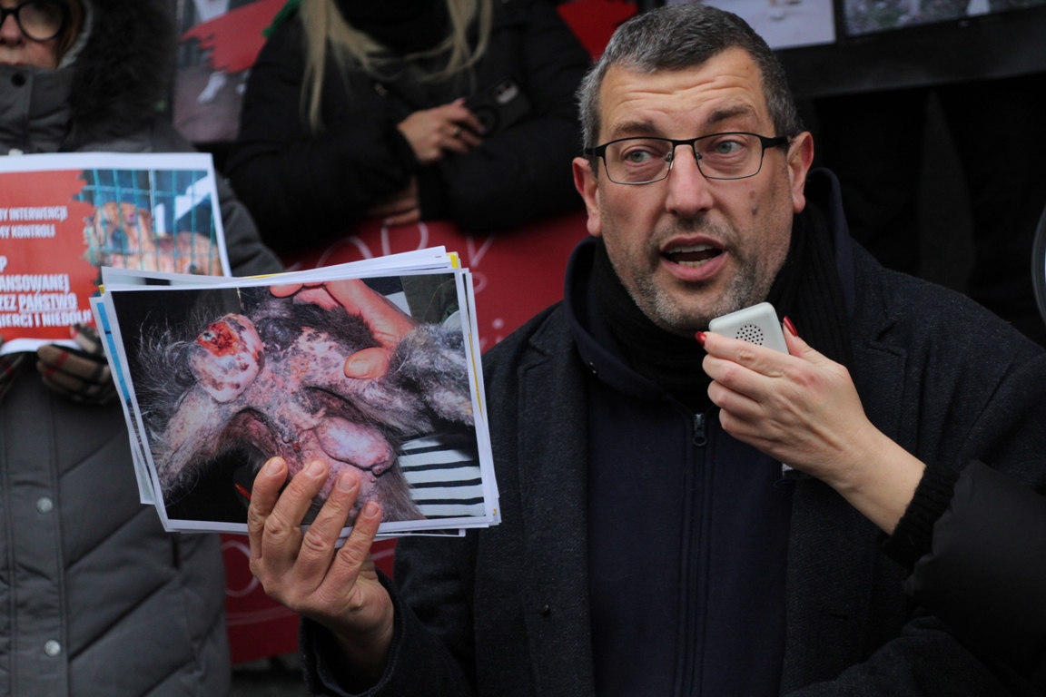 Duże poruszenie wśród zgromadzonych wywołała prezentacja zdjęć psa, który – jak twierdzi organizacja „Pogotowie dla Zwierząt” – w przeddzień protestu został odebrany ze schroniska w stanie skrajnego wycieńczenia. Grzegorz Bielawski z organizacji mówił, że pies był „w stanie agonalnym”, a jego leczenie rozpoczęto zbyt późno.