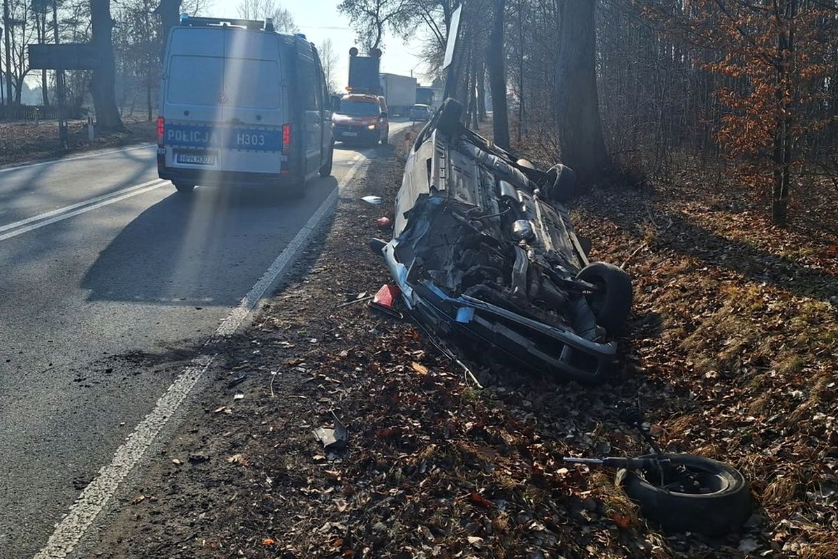 Pojazd osobowy wypadł z drogi, uderzył w drzewo i dachował. Poszkodowane zostały 4 osoby podróżujące autem. Do wypadku doszło na drodze krajowej nr 76 w miejscowości Wilchta w gminie Borowie.