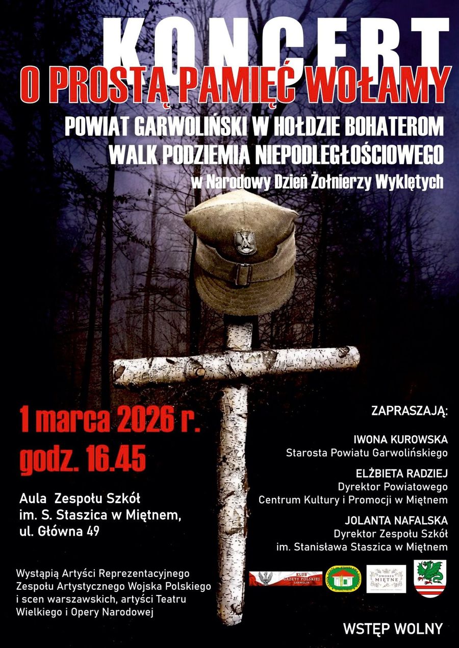 Druga część obchodów odbędzie się o godz. 16:45 w auli Zespołu Szkół im. Stanisława Staszica w Miętnem. Zaplanowano tam koncert „O prostą pamięć wołamy” – Powiat Garwoliński w hołdzie bohaterom walk podziemia niepodległościowego.