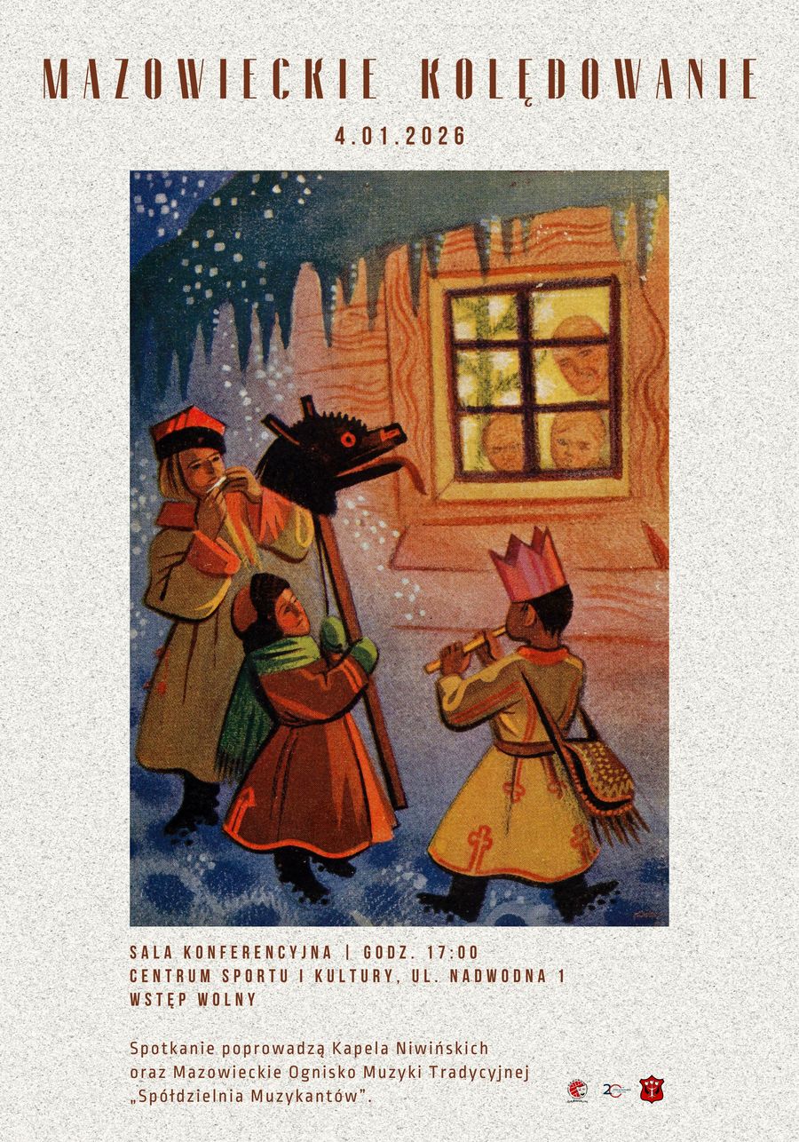 Mazowieckie Kolędowanie to wydarzenie o wyjątkowej formule. Nie jest to typowy koncert, lecz spotkanie, w którym publiczność staje się jego integralną częścią. Uczestnicy otrzymują wydrukowane teksty kolęd – zarówno tych mniej znanych, jak i popularnych – aby móc włączyć się we wspólne śpiewanie aż do ostatniej zwrotki.Wspólnemu kolędowaniu przewodzi Kapela Niwińskich oraz młodzi muzycy skupieni w „Spółdzielni Muzykantów”, działającej przy CSiK pod kierunkiem Mateusza Niwińskiego. To młode pokolenie kontynuatorów muzycznych tradycji, które od kilku lat zgłębia dawne pieśni ludowe – świąteczne, obrzędowe, a także te towarzyszące codziennej pracy i zabawie. W spółdzielni występują m.in.: Maria i Witek Niwińscy, Aniela, Antonina, Rozalka i Ignacy Matusiakowie, Ignacy Różański, Adela i Teofil Mikulscy, Zosia Grzegrzółka oraz Marysia Metera.