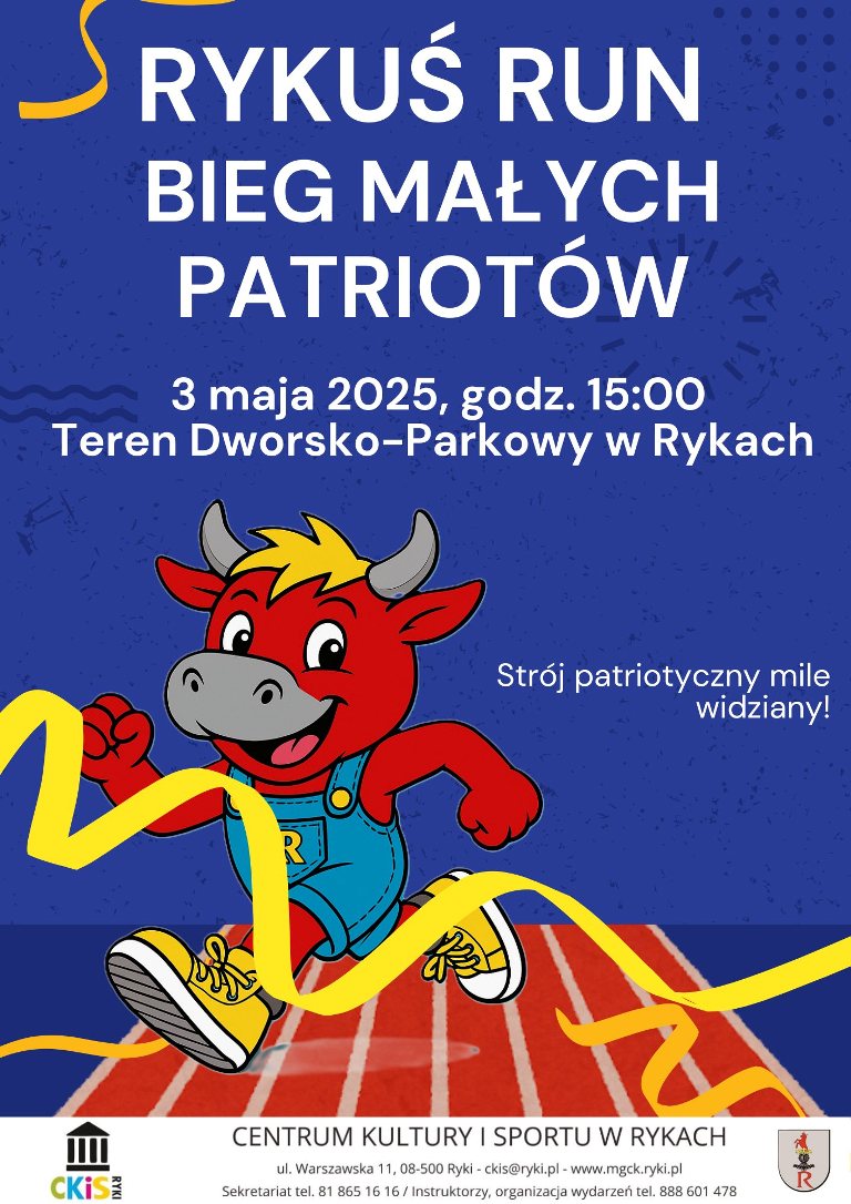 Równolegle odbędzie się Rykuś Run – Bieg Małych Patriotów. Rejestracja uczestników rozpocznie się o 15:00. Starty zaplanowano w czterech kategoriach wiekowych: