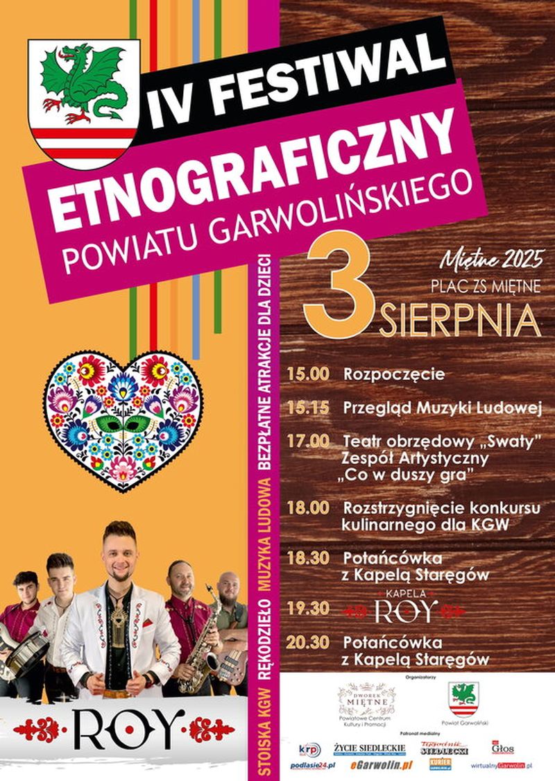 Ziemia Garwolińska wyróżnia się nie tylko na tle województwa mazowieckiego, ale całej Polski pod względem ilości a nade wszystko aktywności gospodyń i gospodarzy. Koła gospodyń wiejskich przeżywają swój renesans, a dzięki takim konkursom kulinarnym i festiwalom jak ten w Miętnem, w tym roku już czwarty, ta aktywność jest widoczna. - To nie tylko festyn – to prawdziwa podróż w czasie do korzeni naszej lokalnej kultury, pełna muzyki, tańca, smaków, barw tych, które od pokoleń tworzą tożsamość naszego regionu. Czeka na Państwa mnóstwo atrakcji, przegląd muzyki ludowej, gdzie będzie można poczuć rytm tradycyjnych melodii, które kiedyś rozbrzmiewały na naszych wiejskich podwórkach, będzie można zobaczyć teatr obrzędowy „Swaty” w wykonaniu zespołu artystycznego ''Co w duszy gra'', a to, zapewniam Państwa, będzie widowisko pełne humoru, zwyczajów i mądrości naszych dziadków. Rozstrzygnie się również konkurs kulinarny kół gospodyń wiejskich. To już jest kolejna edycja tego konkursu kulinarnego, gdzie nasze niezawodne gospodynie i gospodarze przypominają smaki dzieciństwa, ale doprawione oczywiście nutką współczesności... - mówi starosta Iwona Kurowska. Wieczór zakończy się potańcówką pod chmurką, najpierw z kapelą Staręgów, a później koncertem w wykonaniu kapeli ROY.Dodatkowo wspaniałe wystawy „Dawna kuźnia” oraz „W naszej pasiece”, warsztaty bibułkarstwa, wycinanki, malowania na drewnie, pokazy wikliniarskie, pokazy garncarskie i inne cuda tworzone ludzkimi rękami. Dla dzieci dmuchańce, koniki, gry i zabawy podwórkowe, warsztaty muzyczne, malowanie buziek, zabawa z bańkami - bo tradycję warto przekazywać najmłodszym