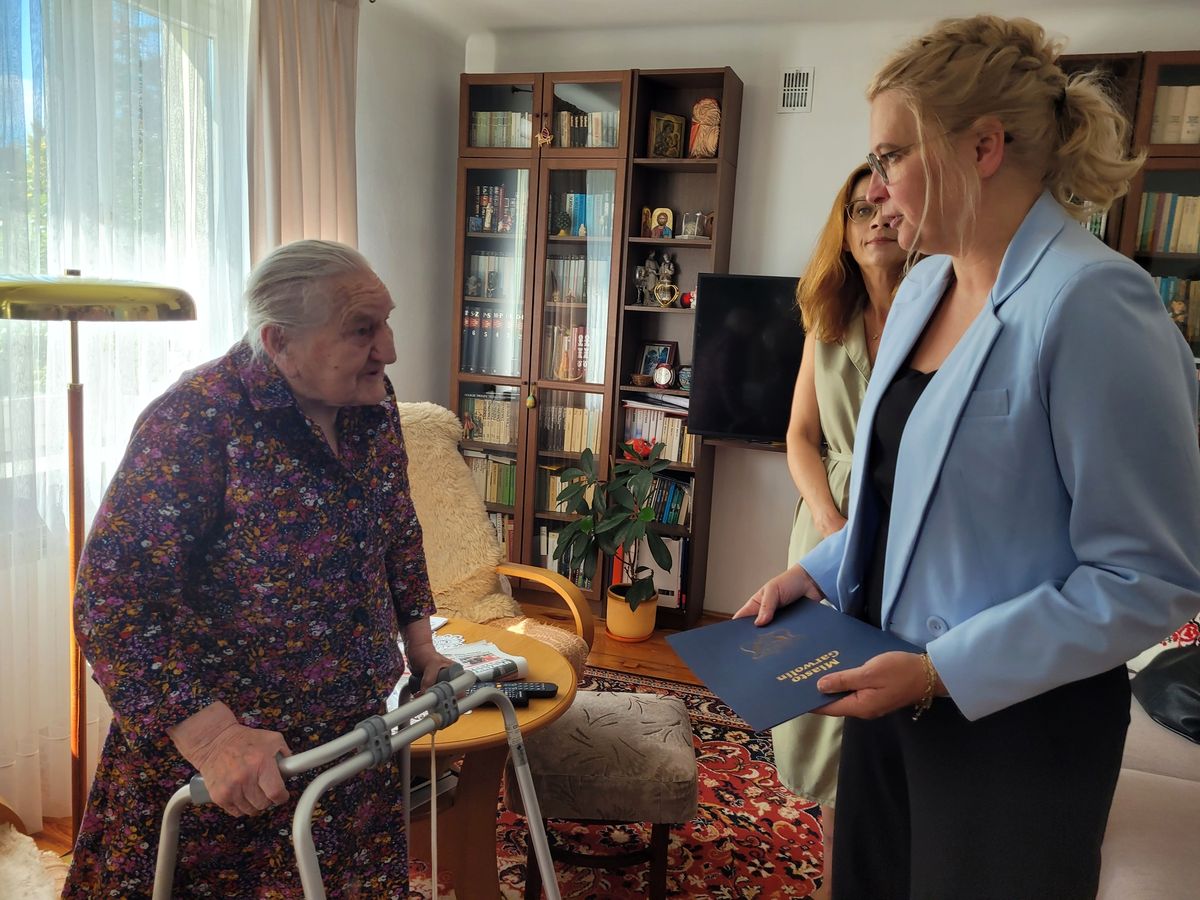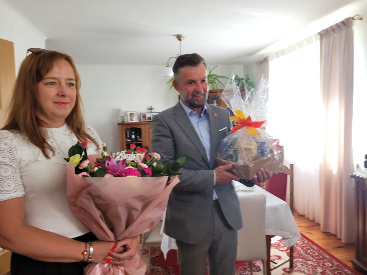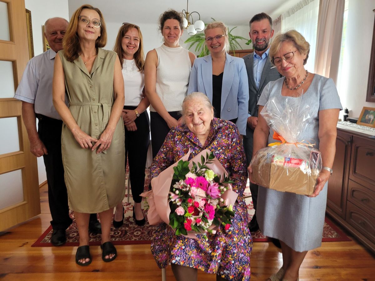 Wśród gości Pani Ireny byli Burmistrz Garwolina Marzena Świeczak, Przewodniczący Rady Miasta Marek Mikulski, Zastępca Wójta Gminy Garwolin Karolina Kasprzak, Sekretarz Gminy Garwolin Martyna Karaś i kierownik USC w Garwolinie Agnieszka Kołodziej. - Droga Pani Ireno. W imieniu własnym, władz samorządowych oraz całej społeczności Garwolina, życzę Pani wielu kolejnych lat w dobrym zdrowiu, spokoju i otoczeniu bliskich osób. Niech każdy dzień będzie pełen życzliwości, radości i ciepła płynącego z serc tych, którzy Panią kochają i szanują – powiedziała burmistrz wręczając list. - Z całego serca gratuluję Pani pięknego jubileuszu – 101. urodzin! To niezwykły moment, który budzi szacunek i wzruszenie. Życzę dużo zdrowia i spokoju – dodał Przewodniczący Rady Miasta Marek Mikulski. Pani sędziwy wiek stanowi skarbnicę doświadczeń i mądrości dla kilku pokoleń – podkreślali przedstawiciele wójta gminy Garwolin.Po lampce szampana i gromkim dwieście lat przyszedł czas na tort i chwile rozmowy. Pani Irena cieszy się dobrym zdrowiem i doskonałą pamięcią. Opowiadała o mieszkańcach Miętnego, nauczycielach którzy ją uczyli w szkole w Michałówce i w garwolińskiej szkole podstawowej nr 1. Pytana o receptę na długowieczność mówi to samo co w ubiegłym roku: Trzeba pracować!