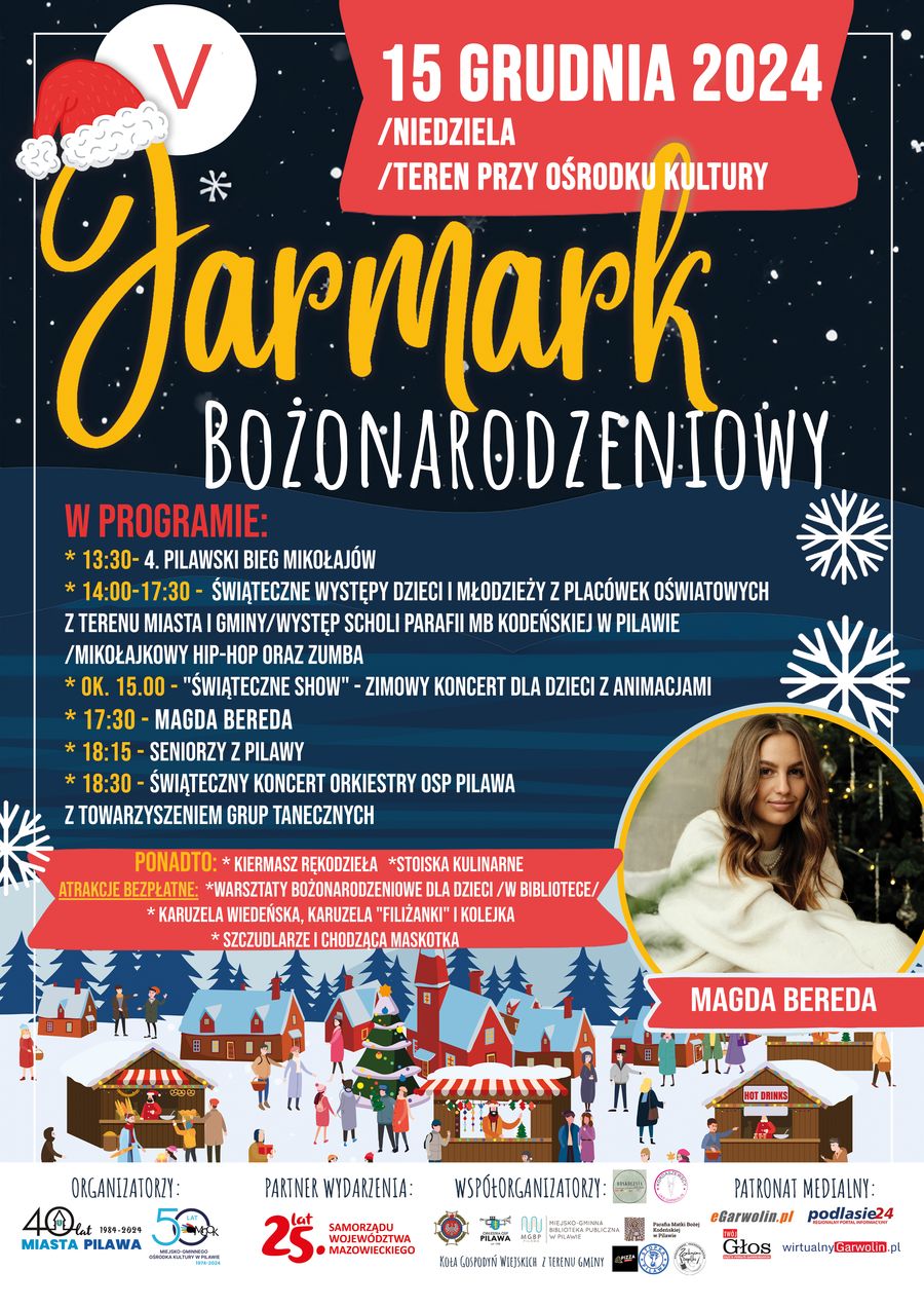 Gościem specjalnym na tegorocznym jarmarku będzie Magda Bereda, która wykona utwory nie tylko świąteczne. Koncert rozpocznie się o 17:30, a po 18:00 wystąpią Seniorzy z Pilawy. Część artystyczną jarmarku zakończy koncert orkiestra dętej OSP Pilawa, która jak zawsze z towarzyszeniem grup mażoretek oraz tamburmajorek zapewne czymś pozytywnym wszystkich zaskoczy. Będą też ''Odskocznia by Ręce, które pieką'', którzy dzięki swej uprzejmości przekazują vouchery dla laureatów 4. Biegu Mikołajów oraz strażacy OSP z terenu miasta i gminy, którzy zawsze zapewniają pomoc techniczną i wsparcie logistyczne