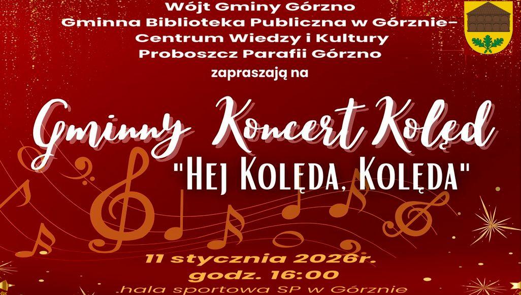Wójt gminy Górzno, Gminna Biblioteka Publiczna w Górznie – Centrum Wiedzy i Kultury oraz proboszcz parafii Górzno zapraszają na koncert kolęd „Hej kolęda, kolęda”, który odbędzie się 11 stycznia o godzinie 16:00 w hali sportowej Szkoły Podstawowej w Górznie. Na scenie zaprezentują się członkinie kół gospodyń wiejskich oraz dzieci i młodzież z placówek oświatowych z terenu gminy. - Wspólne kolędowanie w wykonaniu przedstawicieli różnych pokoleń stworzy ciepłą, rodzinną atmosferę i pozwoli jeszcze raz poczuć atmosferę świąt – podkreśla wójt Waldemar Sabak.Po części artystycznej organizatorzy zapraszają na poczęstunek przygotowany przez panie z kół gospodyń wiejskich.