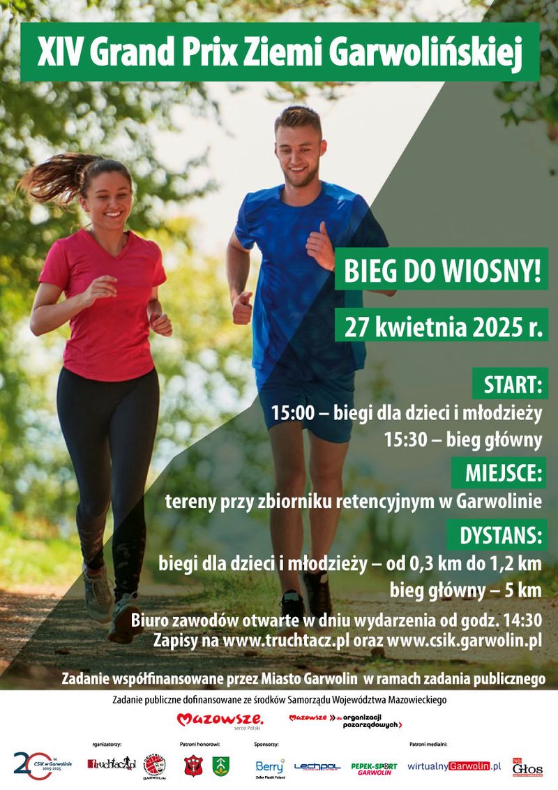 Grand Prix Ziemi Garwolińskiej to wydarzenie, które na stałe wpisało się w kalendarz sportowych imprez w Garwolinie i zyskało sobie wielką sympatię wśród mieszkańców. - Niewątpliwy atut tego wydarzenia to fakt, że mogą w nim wziąć udział całe rodziny. Od kilkuletnich dzieci po seniorów. Można wspólnie, aktywnie spędzić czas na świeżym powietrzu, doskonale się przy tym bawiąc. To nie tylko zawody sportowe, to przede wszystkim świetna międzypokoleniowa integracja – mówi Michał Kopik, prezes Stowarzyszenia Truchtacz.plPierwszy w cyklu „Bieg do wiosny” odbędzie się w niedzielę 27 kwietnia na terenach przy zbiorniku retencyjnym w Garwolinie. Biegi dla dzieci rozpoczną się o godzinie 15:00. Dorośli wystartują o godzinie 15:30. Kolejne zawody odbędą się 11 maja, 7 września i 5 października.